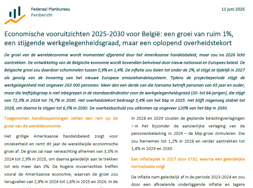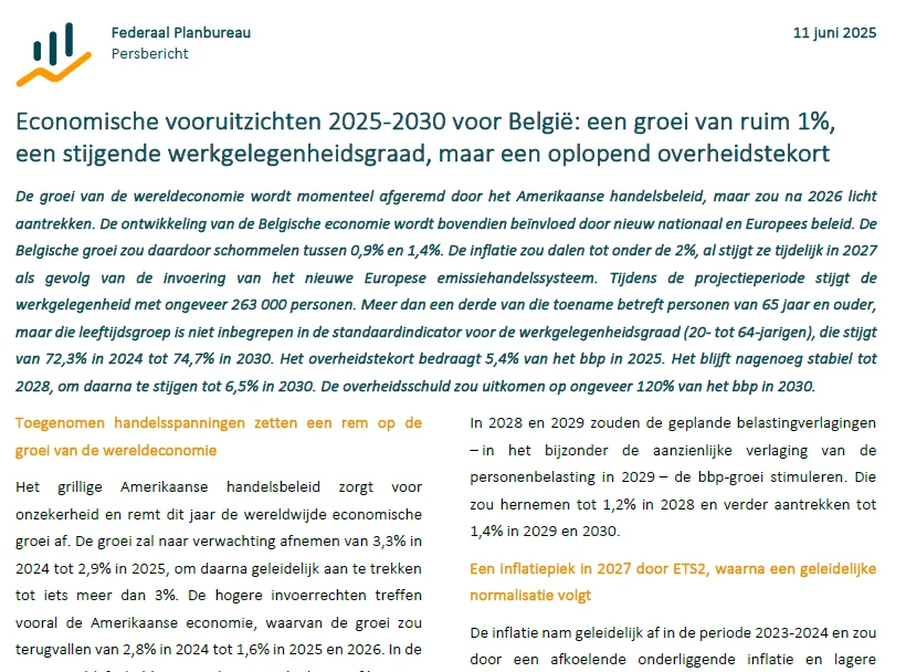 In juni publiceerde het Federaal Planbureau zijn vooruitzichten voor de Belgische economie tot 2030. Vier maanden later is het beeld nog altijd opvallend actueel — en misschien zelfs relevanter dan ooit.